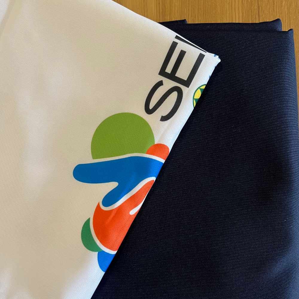 Mantel 100% poliéster con camino de mesa personalizable.
