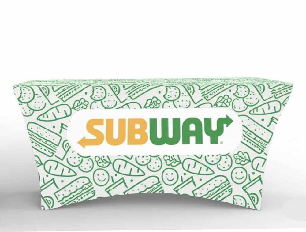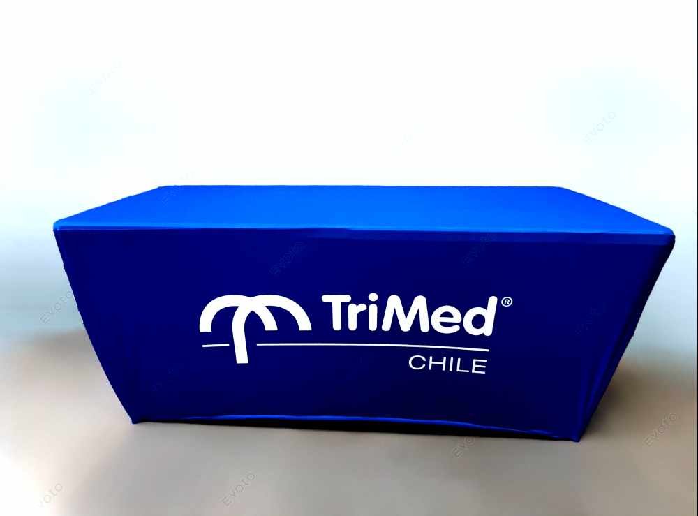Mantel de tela elástica sublimado ideal para mesas plegables.